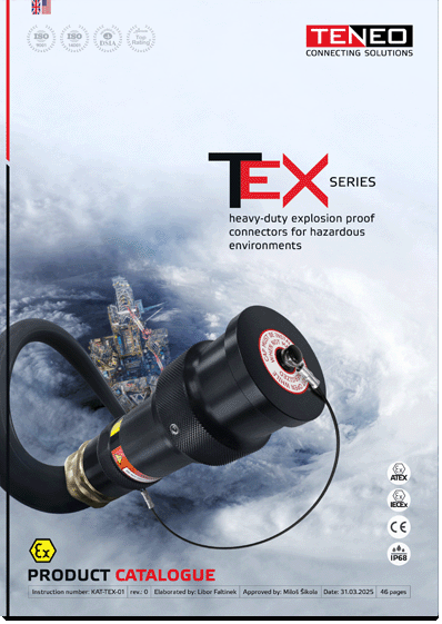 The TEX Series is derived from the TENEO TSL Series general purpose connector that has earned a reputation for performance and quality in the Industrial and Marine, Oil and Gas Markets. TEX connectors are certified for use in a Zone 1 Gas IIC and Dust 21 environments with IP68 environmental sealing characteristics and T6 temperature class.